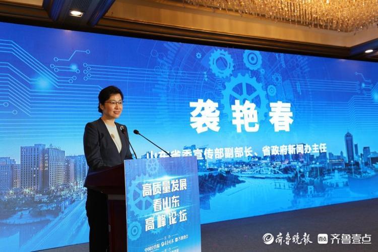 12月3日,由中国经营报、齐鲁晚报•齐鲁壹点主办,中共潍坊市委宣传部承办的“高质量发展看山东”高峰论坛在潍坊举行。山东省委宣传部副部长、省政府新闻办主任袭艳春发表致辞。