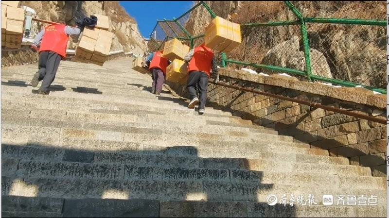根据景区管理人员介绍,从中天门经南天门再到碧霞祠,共计3900多级台阶。王怀玉、梁思臣、徐西永一行走过这段距离,不过两个小时。当放下货物的那一刻,梁思臣感慨:“真轻松啊!”