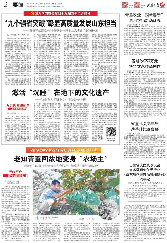 “‘九个强省突破’明确了山东经济社会发展的核心优势,找准了山东在全国大局中的定位和发展路径,是前瞻性和实践性的有机统一。”省检察院检察长陈勇认为,这一目标的提出是山东自觉站位新发展阶段,坚定贯彻新发展理念,主动融入新发展格局的体现,必将对“十四五”乃至更长时间山东经济社会发展起到引领作用。
