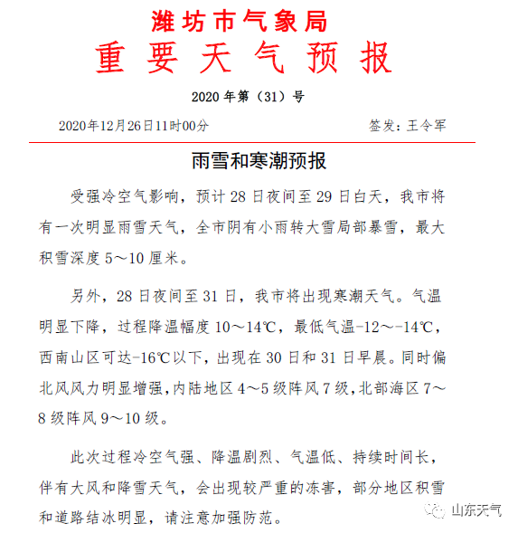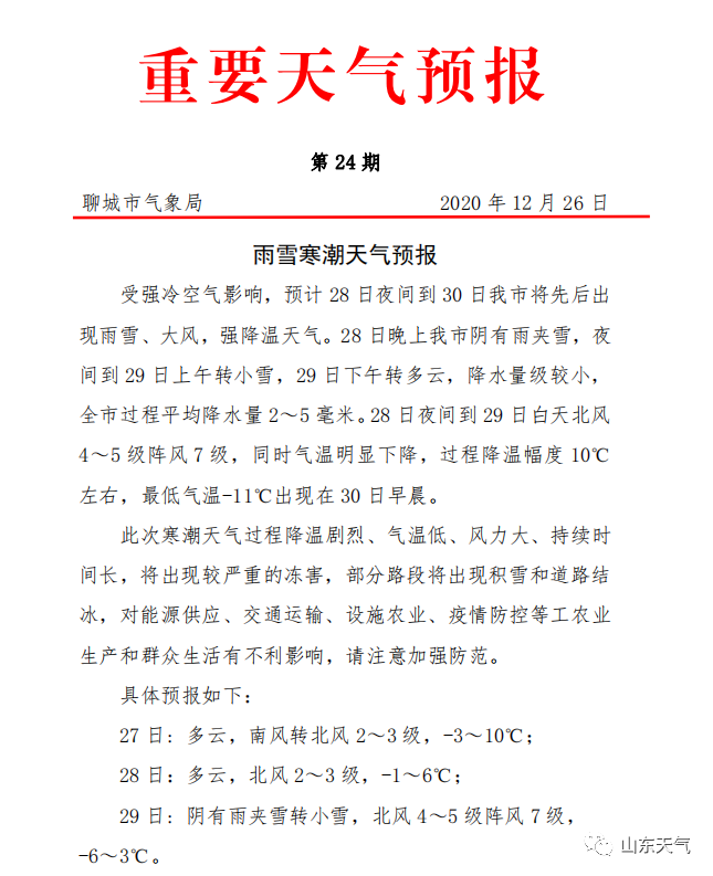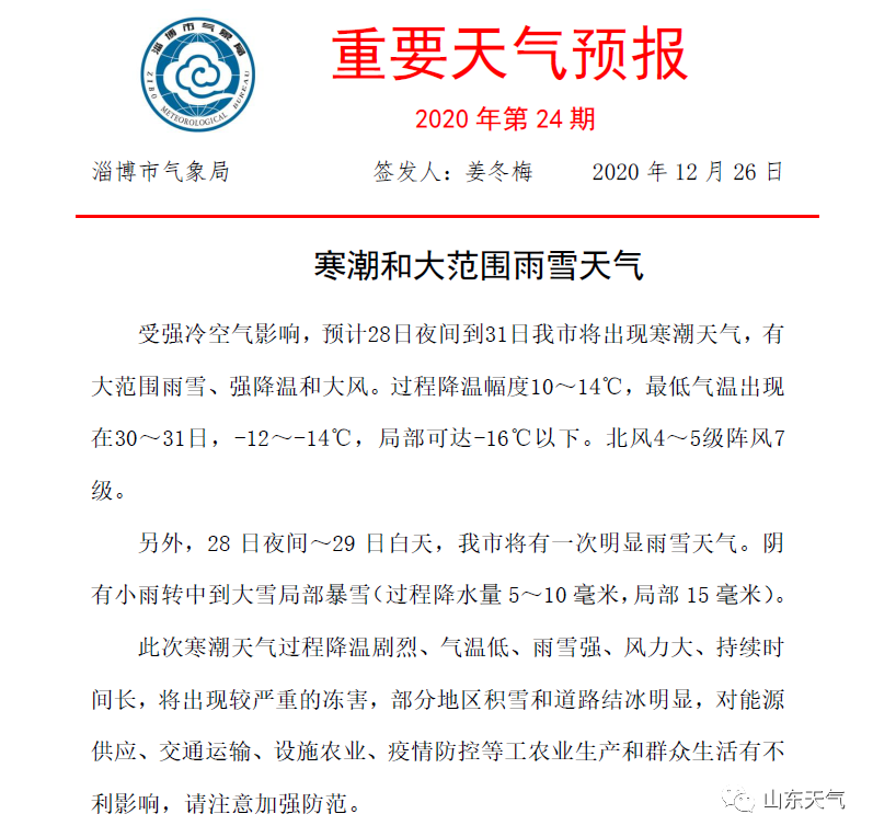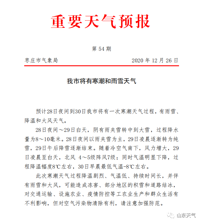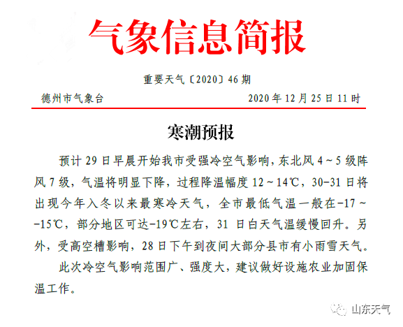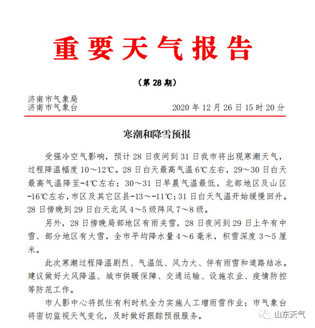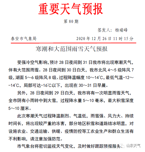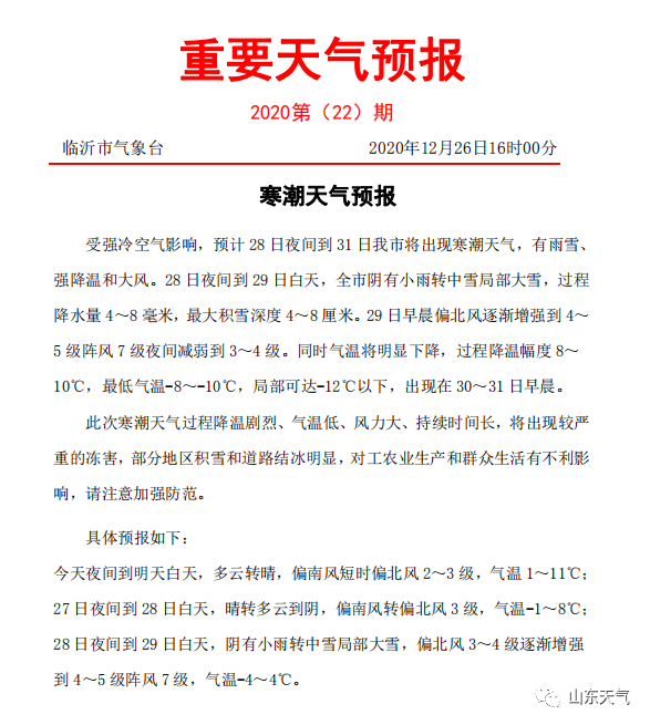 今年最强寒潮来袭,山东下周将有大范围雨雪、强降温和大风
