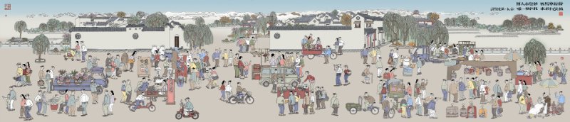 本站公共艺术品以“国泰民安”为主题,以民间艺术和市井生活为出发点,使用釉中彩高温烧制瓷板工艺展现济南国泰民安的盛世场景,近景体现热闹的集市场景,远景体现济南历史特色建筑和景观,画面富有进深感,内容上结合老济南特色民居及生活方式,展现了济南的各种民间艺术、民俗活动及丰富的市井生活。