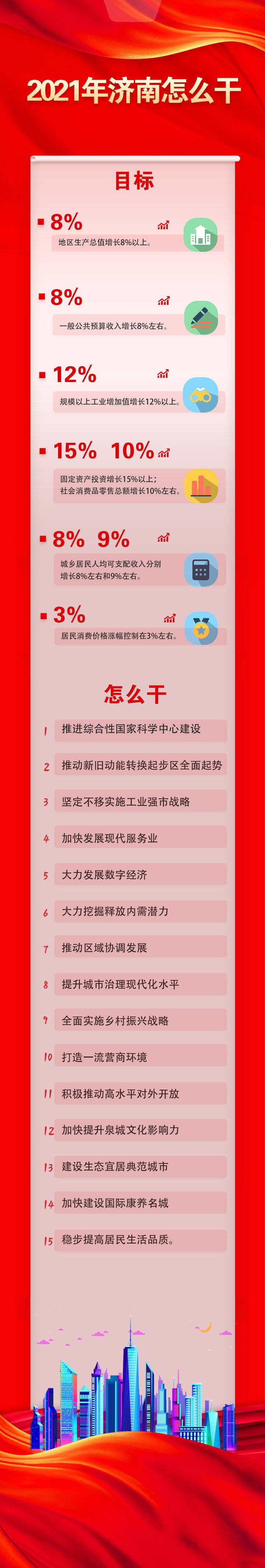 2021年是“十四五”开局之年,也是济南贯彻落实黄河重大国家战略、建设新时代现代化强省会的起步之年。济南将坚持新发展理念,融入新发展格局,坚持系统观念,统筹疫情防控和经济社会发展,统筹发展和安全,做好“六稳”工作、落实“六保”任务,保持经济运行在合理区间,全面落实黄河流域生态保护和高质量发展重大国家战略,牢牢把握“强省会”战略实施和省市一体化推进济南加快发展重大机遇,聚焦“五个济南”“五个中心”,聚力“七个新跨越”“十个新突破”,推动新时代现代化强省会建设开好局、起好步,以优异成绩庆祝建党100周年。