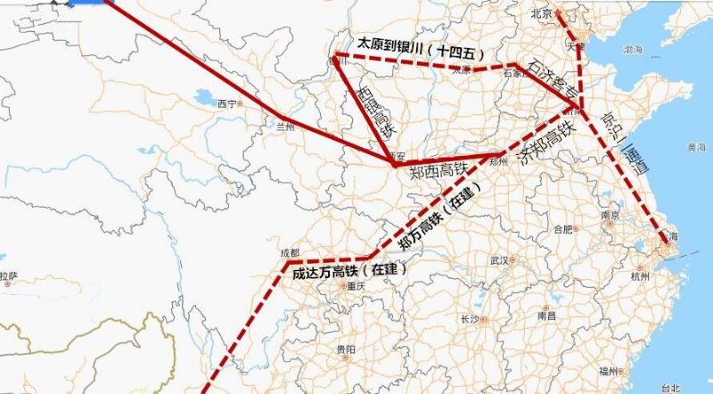 济南经石家庄到太原的高铁早已通车运营,济南至太原最快3.5个小时。等太原至银川高铁建成后,济南至银川6个小时左右可达。