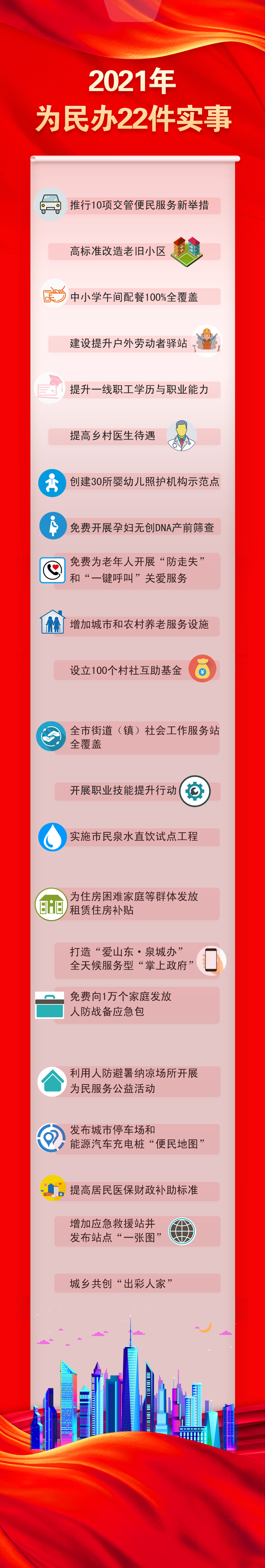一图读懂|今年济南再为民办22件实事 壹现场 2021-01-12 9881 1月12日,济南市十七届人大三次会议在山东大厦召开。在去年23件为民办实事全面完成的基础上,今年济南将为民办22件实事。 责任编辑:孟燕