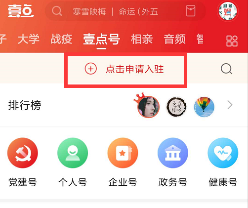 第二步:点击壹点号频道,点击【申请入驻】