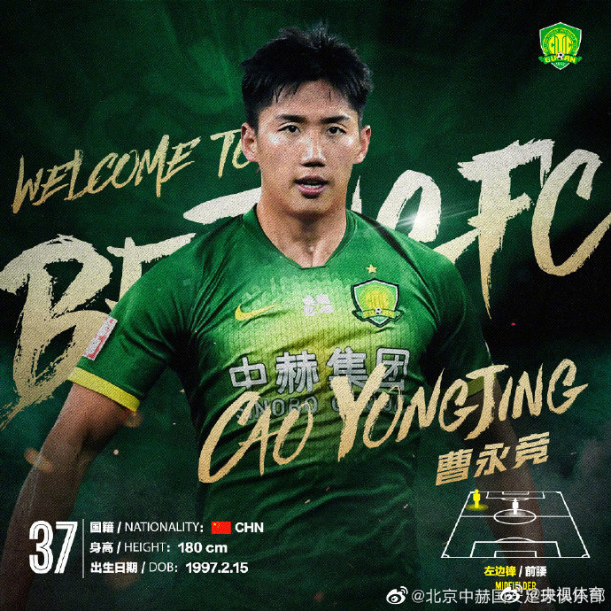 北京国安官方宣布,曹永竞正式加盟,新赛季将身披37号球衣代表球队出战亚冠、中超、足协杯等各项赛事。现年23岁的曹永竞是一名中前场多面手,曾多次入选国青、国奥队。2019年,他代表北京人和在中超联赛中送出了5个助攻,2020年,他代表北京人和在中甲联赛中奉献了3个进球。