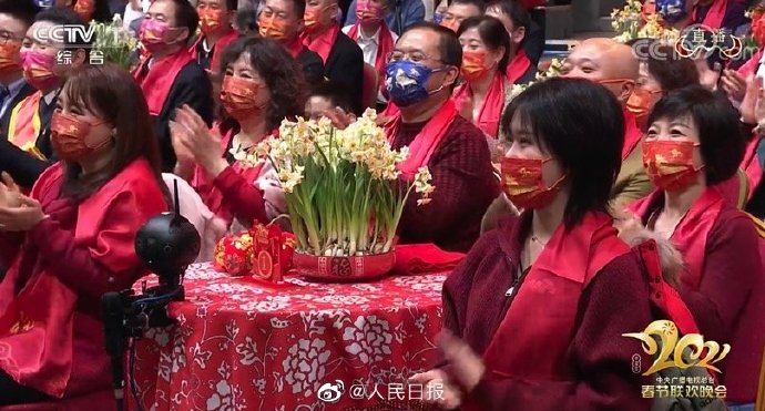 今年的春晚现场,台下观众戴口罩观看节目,但掩不住满脸的开心喜悦。牛年春节有些不同,但快乐在,年味在,温暖在。