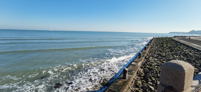 立春后的烟台已褪去被严寒包裹的外衣。此时正值退潮,海浪拍打着岸边,露出砾石滩,潮汐会将海中体积较小的鱼虾蟹等推入石块的缝隙中,所以几个石块的缝隙下下常常会藏有海物。如果这是夏天,人们便会叫上三两亲朋,或用手,或用工具探寻砾石下的秘密,孩子们在几个大石块上跳跃穿行,敏捷轻巧的身形以及“初生牛犊不怕虎”的无畏之心使他们从来不会摔倒或受伤,这就是烟台人口中“赶海”一词的由来。