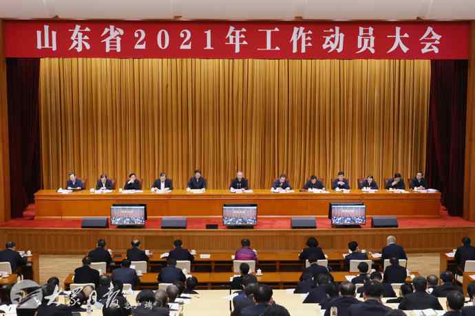 2月18日上午,省委、省政府召开全省2021年工作动员大会。会议以习近平新时代中国特色社会主义思想为指导,深入学习贯彻党的十九大和十九届二中、三中、四中、五中全会精神,认真贯彻落实习近平总书记对山东工作的重要指示要求,立足新发展阶段,深入贯彻新发展理念,服务构建新发展格局,聚焦高质量发展主题,锚定“七个走在前列”“九个强省突破”,动员全省广大党员干部群众乘势而上求突破、发奋图强开新局,在新征程中迈好第一步、见到新气象。