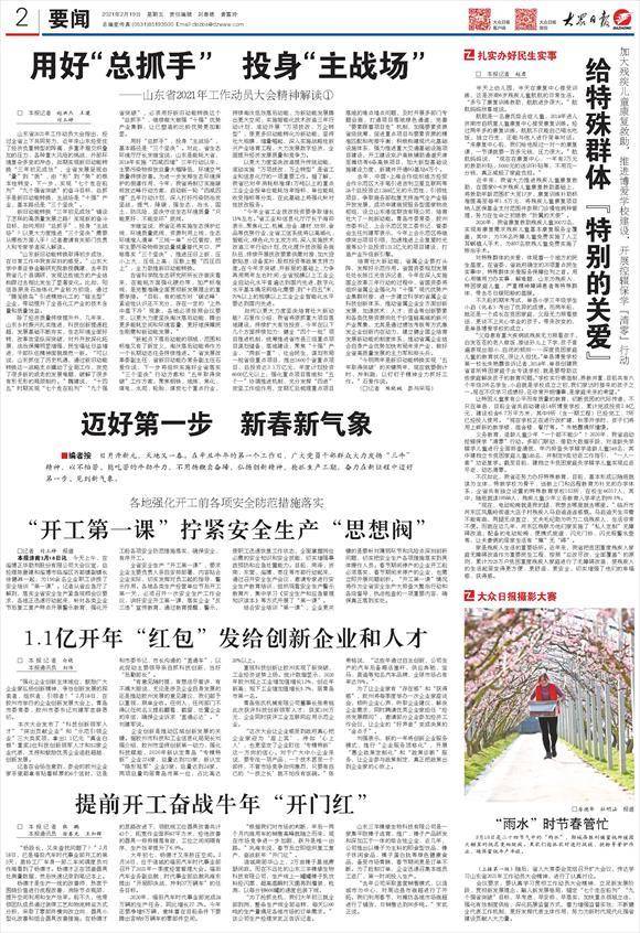 山东省2021年工作动员大会指出,经过全省上下共同努力,近年来山东经受住了经济负重转型的阵痛、多重矛盾交织叠加的压力、各种重大风险的挑战、外部环境复杂多变的冲击,如期实现新旧动能转换“三年初见成效”,全省发展呈现由“量”到“质”、由“形”到“势”的根本性转变。下一步,实现“七个走在前列”“九个强省突破”的奋斗目标,总抓手是新旧动能转换,主战场是“十强”产业,基本路径是“三个坚决”。