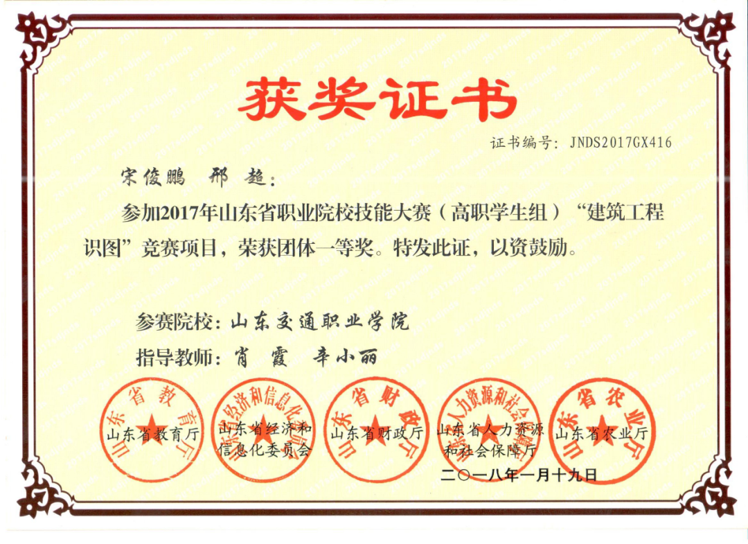 在全国全省高职院校职业技能大赛中,山东交通职业学院公路与建筑系先后荣获测绘赛项国赛一等奖3项、二等奖3项,省赛一等奖3项、二等奖5项;建筑工程识图荣获国赛一等奖1项,省赛一等奖1项、二等奖1项。近年来,为社会输送大批优秀人才,就业率稳定在98%以上。
