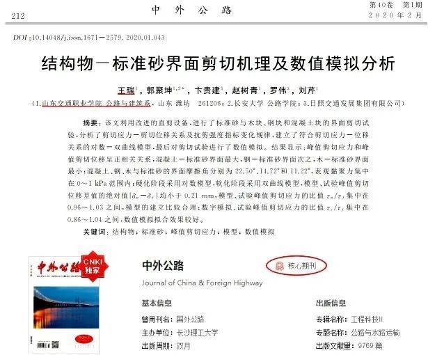 鼓励道桥“3+2”学生参与教师科研项目,形成了师生协同的培养机制。截止目前,学生以第一作者发表论文6篇,其中在核心期刊《中外公路》和《工业建筑》发表论文2篇,授权实用新型专利1项。