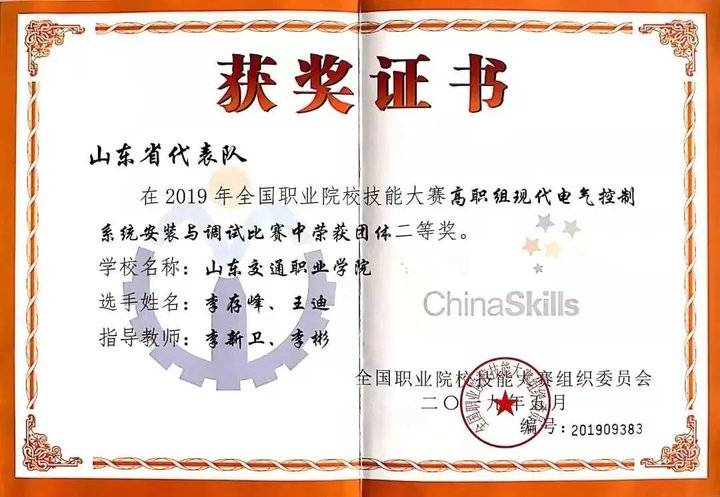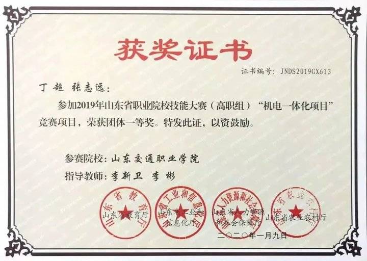 荣获2020年山东省职业院校技能大赛“机器人系统集成”赛项一等奖