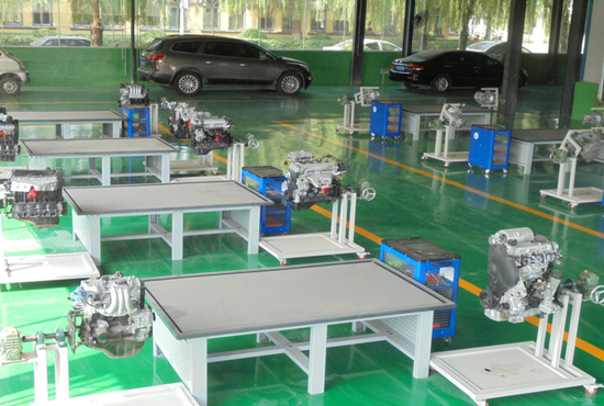 汽车实训中心:汽车结构与拆装实训区、汽车电器结构与维修实训区、汽车电器与电子检测实训区、汽车维修与检测实训区、整车机构教具展示区等;