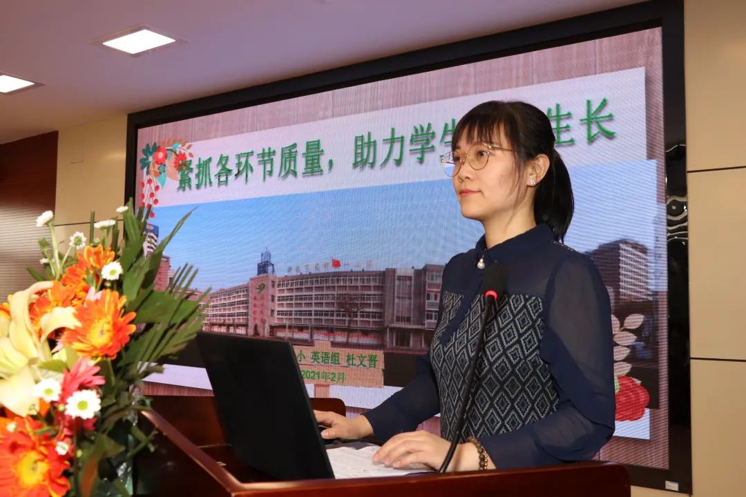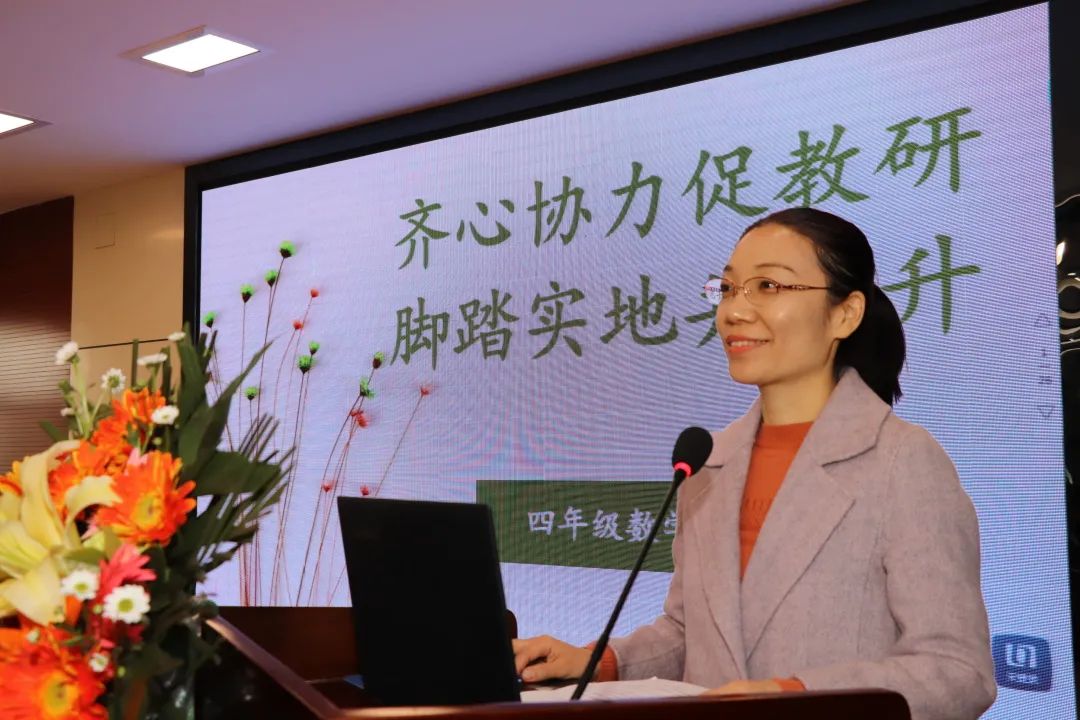 唐建荣老师介绍了四年级数学团队是一个积极向上,团结互助,充满活力的集体。日常教学中老师们如何剖析学生在新知学习过程中可能存在的困难,有针对性的找出解决方法,努力培养学生的数学思维,提高运用知识解决实际问题的能力。
