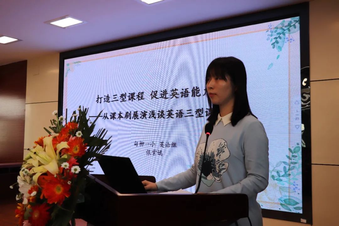 张紫嫣老师介绍了如何在课程建构中,利用拓展课程“I love reading!”,兴趣课程“I love acting!”打通了基础课程、拓展课程、兴趣课程的内在联系,构建了促进学生英语能力生长的课程体系,用戏剧的魅力点亮了英语课堂。《木兰魂》的成功展映,既得益于区教研室“小学英语戏剧教学实践与研究”的品牌效益,也是学校近年来打造三型课程的成果体现。