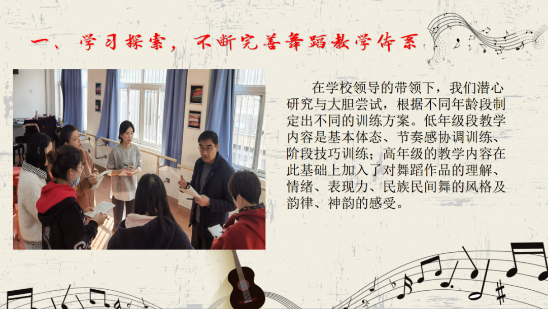 桑真老师结合学校的办学理念“为孩子的一生幸福奠基”和“三型”课程体系,详细介绍学校舞蹈兴趣课程的开展和实施。使学生从音乐中享受到喜悦、乐趣,从音乐中得到启迪,使学生的智力得到开发,培养学生的创造力,并为今后的成长发展打下了良好的基础。