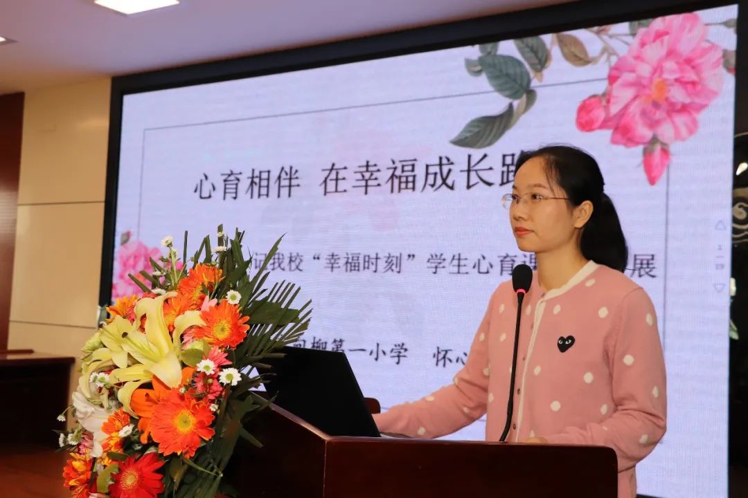 怀心盈老师代表“幸福时刻”学生心育课程研究团队向大家汇报学校一年来心理活动的开展情况。一年来,学校确定了心育课程主题,优化课程设计与实施,开展多样活动,促进师生心理成长。心理健康活动课在全校全面铺开,实现了课程落地育人的目标,受到了家长的一致好评,欣喜地感受到了心理健康教育的成效。研制适合我校心育课程实施和评价的标准,将是下一阶段团队要研究的重点。