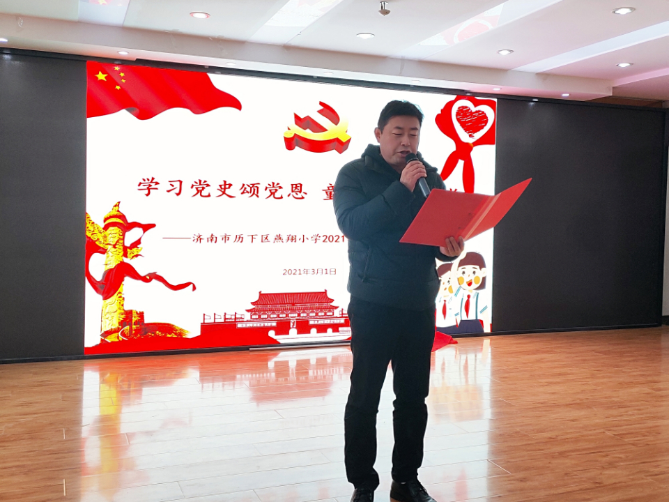 3月1日清晨,济南市历下区燕翔小学在多功能厅隆重举行“学习党史颂党恩 童心向党促成长”——2021年春季学期开学典礼。