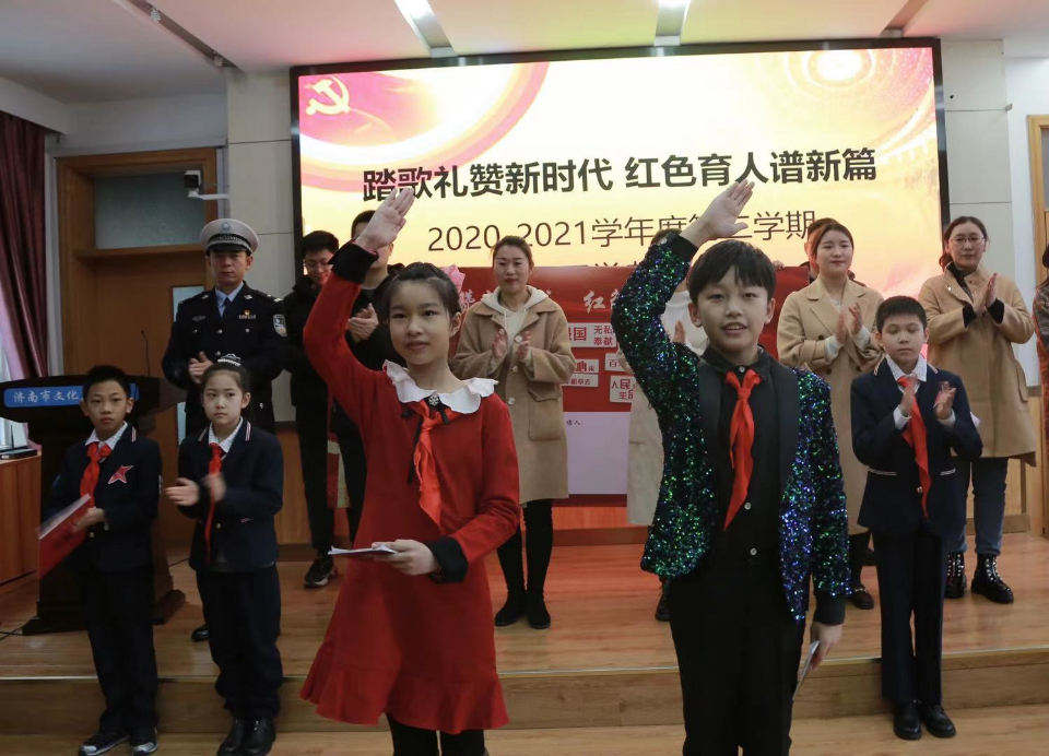 3月1日,济南市文化东路小学开展了以“踏歌礼赞新时代 红色育人谱新篇”为主题的新学期开学典礼。