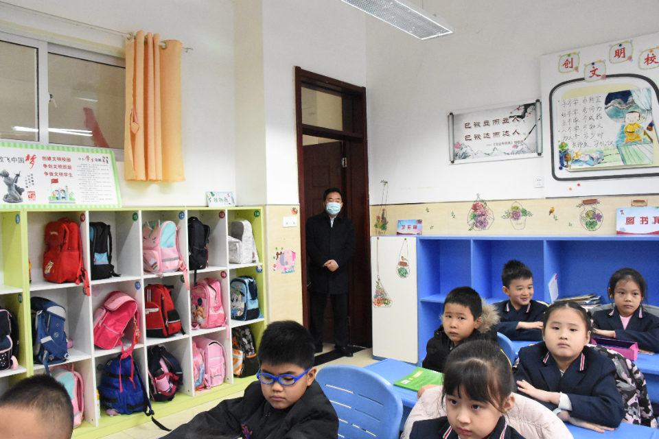 校长刘强详细介绍了学校开学第一课安排、教育教学、安全和防疫等工作情况。随后,王品木走进教室,叮嘱学生们要注意防寒保暖。王品木充分肯定了龙德学校春季开学工作及安全和防疫相关工作,同时特别强调,学校要坚决把师生生命安全和身体健康放在第一位,认真总结经验,切实守牢校园安全底线,尤其是要时刻关注学生的身体状况,确保春季学期工作安全有序进行。