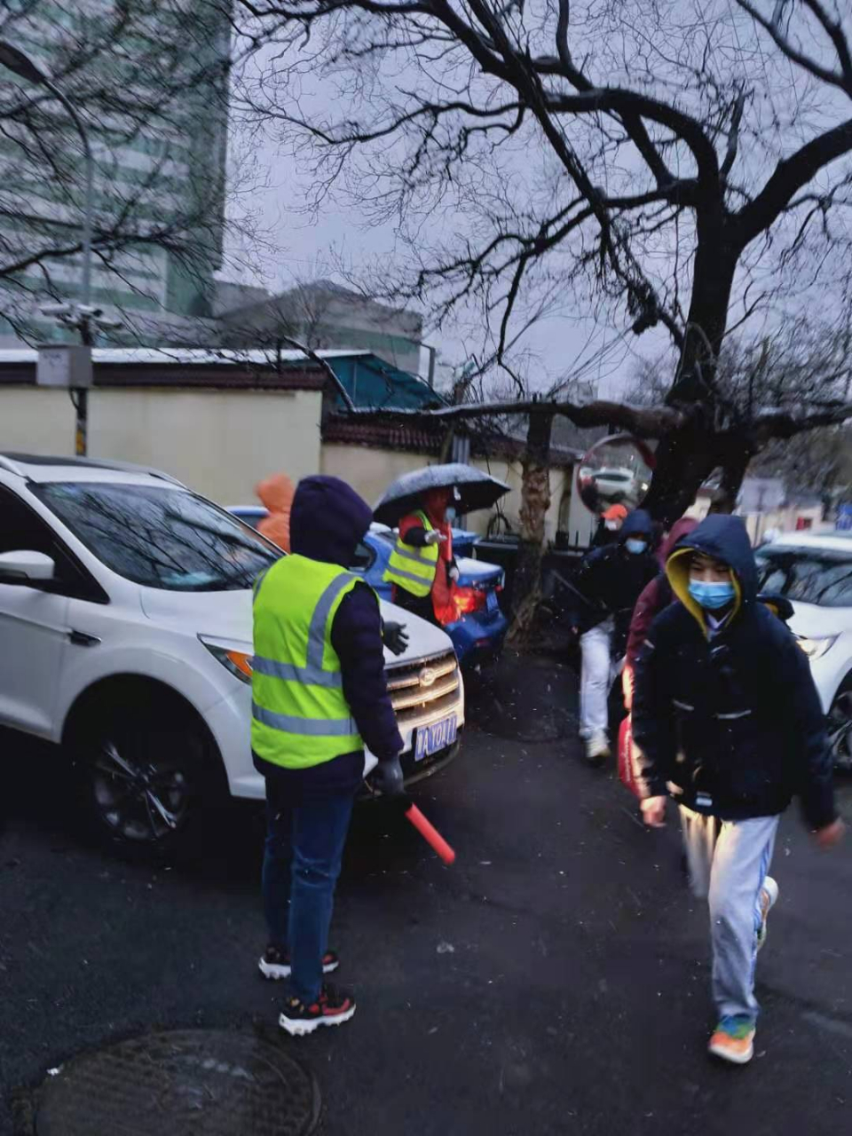 3月1日清晨,济南五中校门周边秩序井然,学校、公安、社区联动一体,家长志愿者们顶风冒雪,早早站到指定岗位,疏导交通,一如既往地保障师生入学安全。