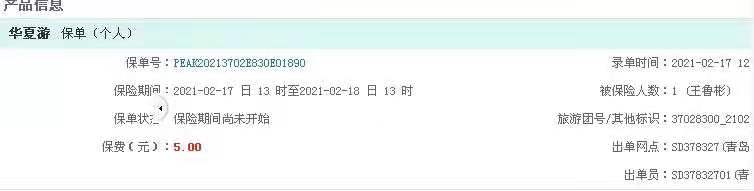 记者了解到,滑雪场给王先生投保的保险公司是中国人保,为了弄清投保的具体时间,9日下午,记者拨打了中国人保客服电话,工作人员查询后称投保的具体公司是平度公司,他们将尽快联系平度公司工作人员给予回复。9日下午3点30分左右,记者接到一名自称保险公司工作人员的电话,还未等记者将问题说完,对方一句“没事了”就挂断了电话。记者再次向中国人保客服进行反映,过了一会,记者又接到这名自称保险公司工作人员电话,对方说他只对客户负责,如果需要采访联系办公室,随后挂断电话。但记者从滑雪场提供给王先生的保单截图上看到,截图并不完整,只能看到录单时间为“2021-2-17 12”几个数字,也就是说王先生保险录单时间是在当天中午12点某个时间点,而生效时间是2月17日13时。