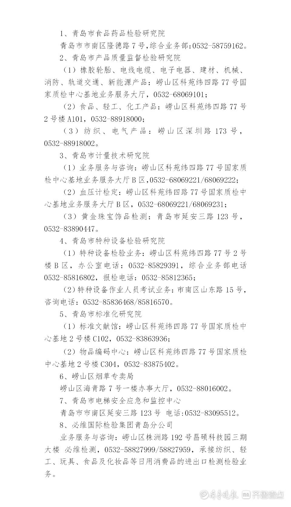 部分检测机构联系方式