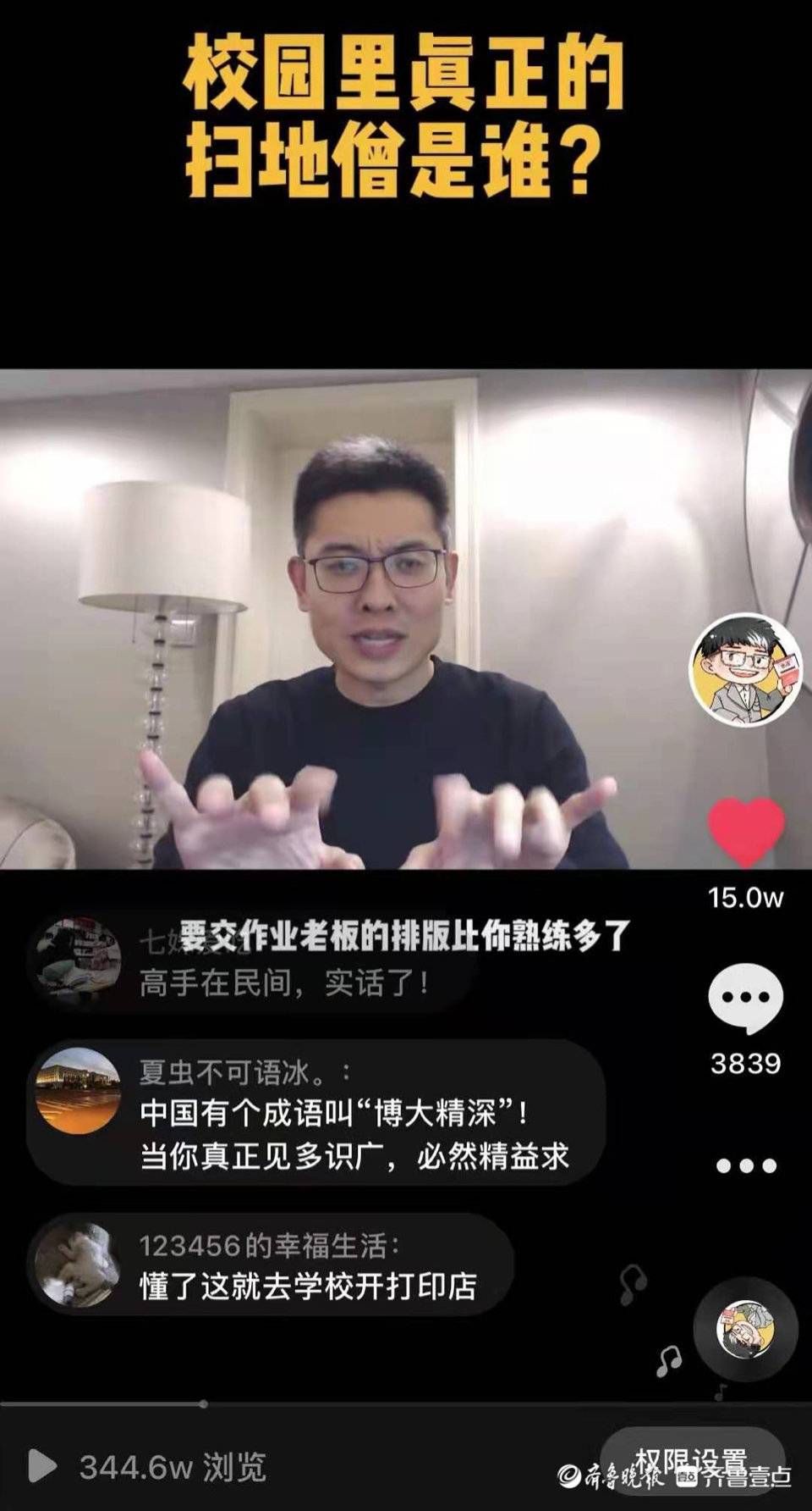 这些类似“润滑剂”的小视频、小段子,都是本来可能会被当作边角料扔掉的东西。“无论写文章还是拍摄剪辑小视频,抑或是在抖音、B站上的探索尝试,其实都是围绕着课程。单纯去硬造一个段子,是造不出来的。可能还是要去多想多看,多留点心。”