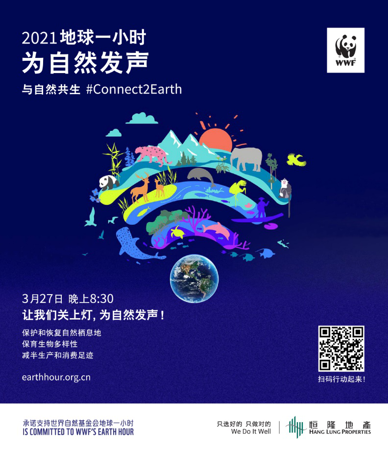 3月27日(星期六)为世界自然基金会举办、一年一度的“地球一小时”活动。恒隆一如既往,全力支持此项年度盛事。当天晚上8时30分,济南恒隆广场连同恒隆旗下另外九个内地项目及16个香港物业,将所有非必要的灯光关掉一小时,以唤起大众对全球气候变化及环境保护的关注,为自然发声。