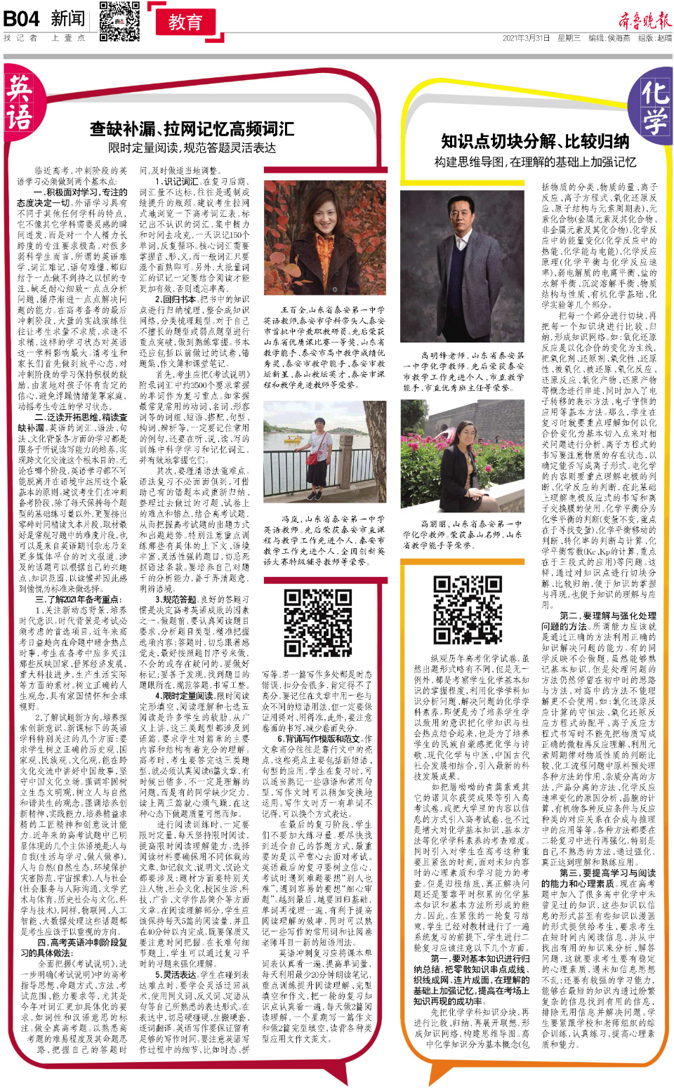 高丽丽,山东省泰安第一中学化学教师。荣获泰山名师,山东省教学能手等荣誉。