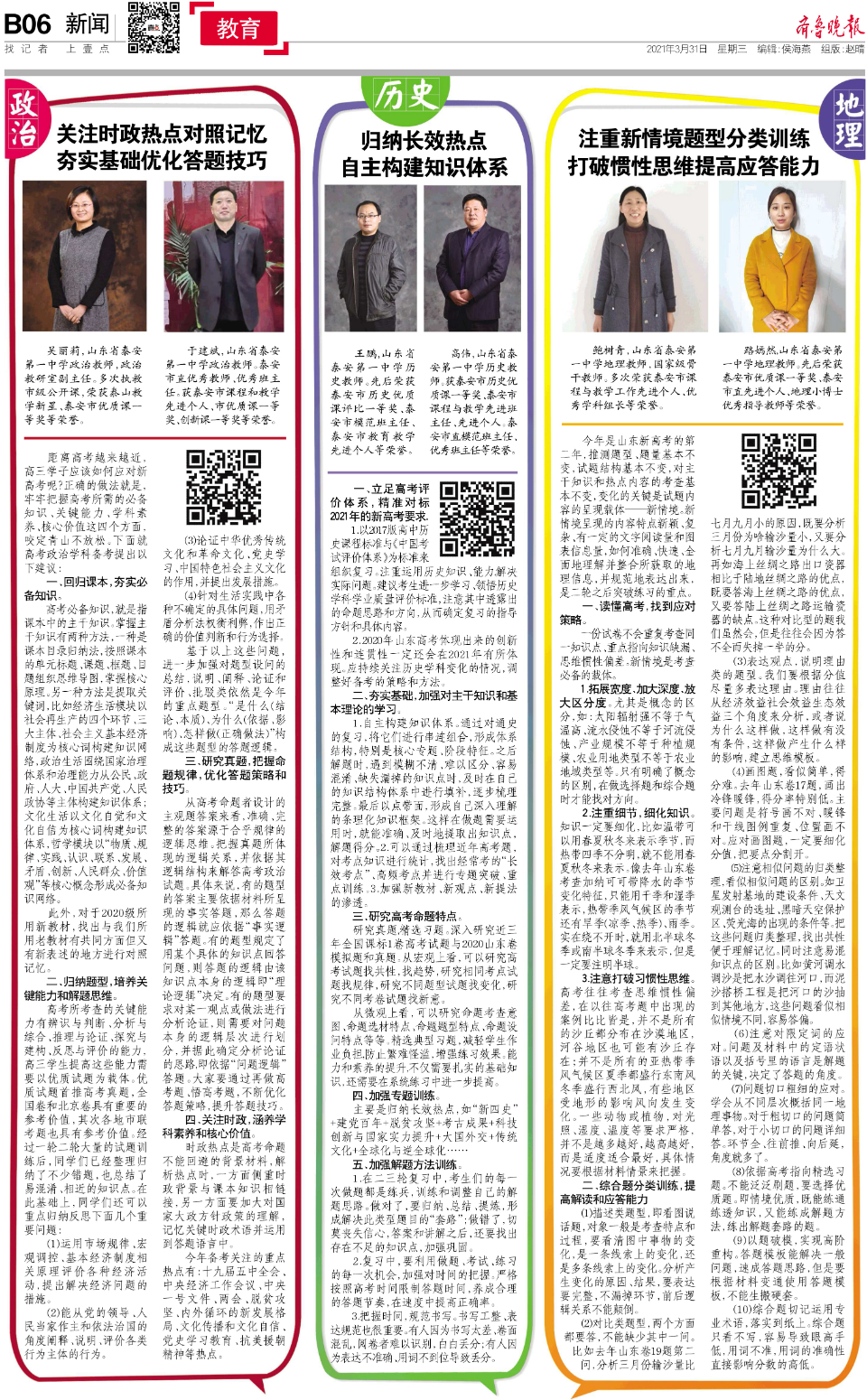 2.2020年山东高考体现出来的创新性和连贯性一定还会在2021年有所体现。应持续关注历史学科变化的情况,调整好备考的策略和方法。