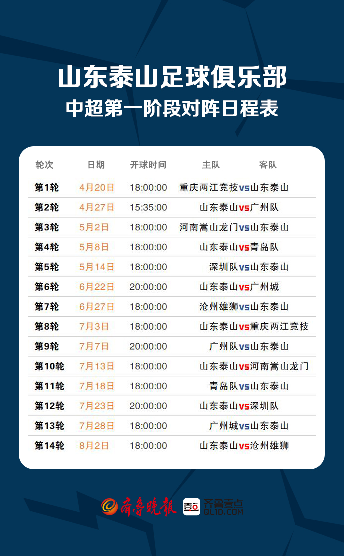 如约而至,中超4月20日开启,山东泰山首阶段赛程请查收