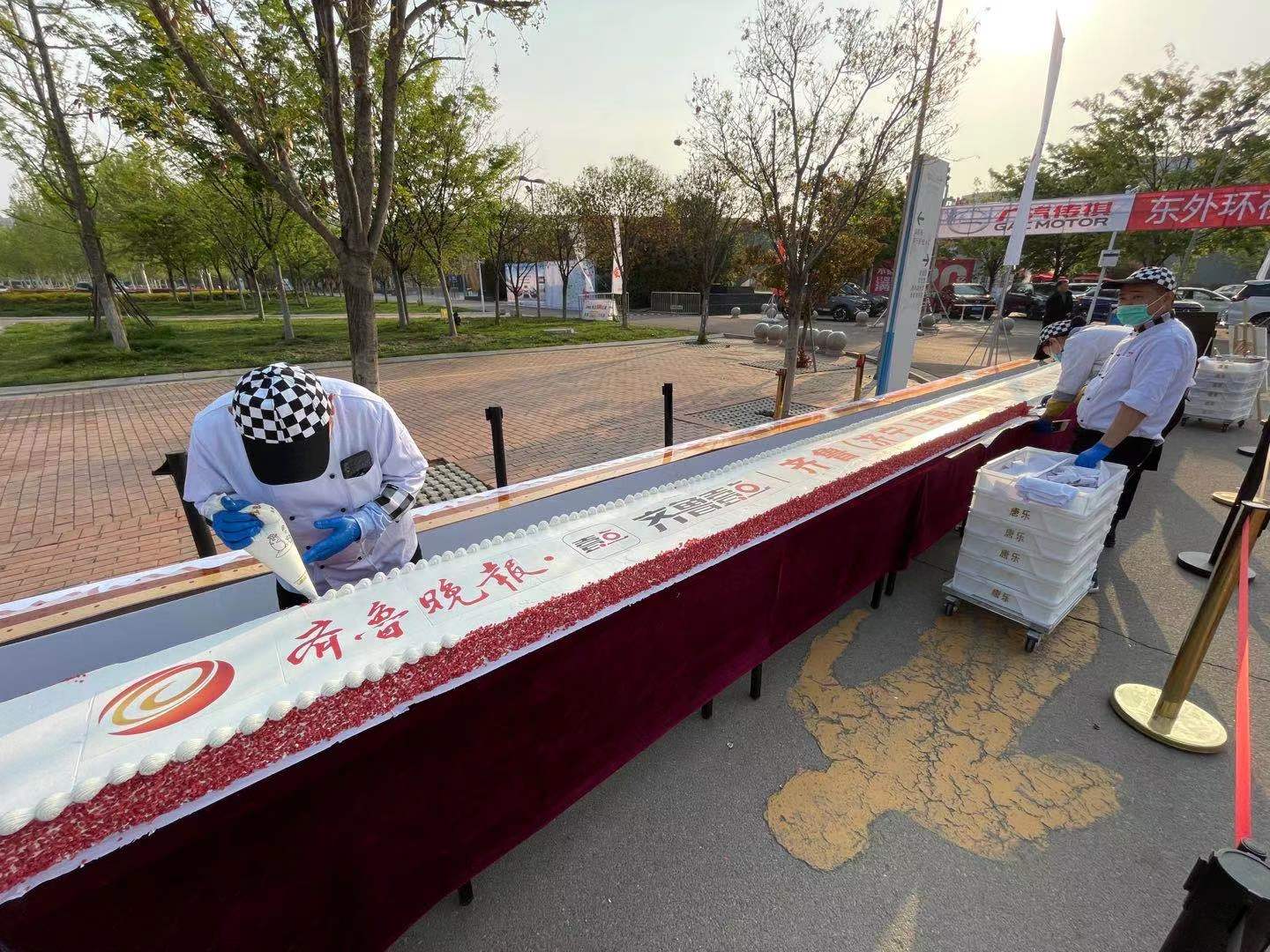开展前夕,在车展搭建现场,齐鲁晚报·齐鲁壹点记者看到工作人员正在准备一个长20多米的大盒子,旁边一位来自唐乐蛋糕的员工正在指挥他们一步步地拼装。“今年是车展20周年,主办方委托我们唐乐制作了一个长达20米的大蛋糕,为这次车展助兴。”来自康泉食品有限公司的运营总监谭磊介绍,专为车展准备的20米大蛋糕将打破济宁蛋糕制作的长度纪录,成为济宁最长的单体蛋糕。