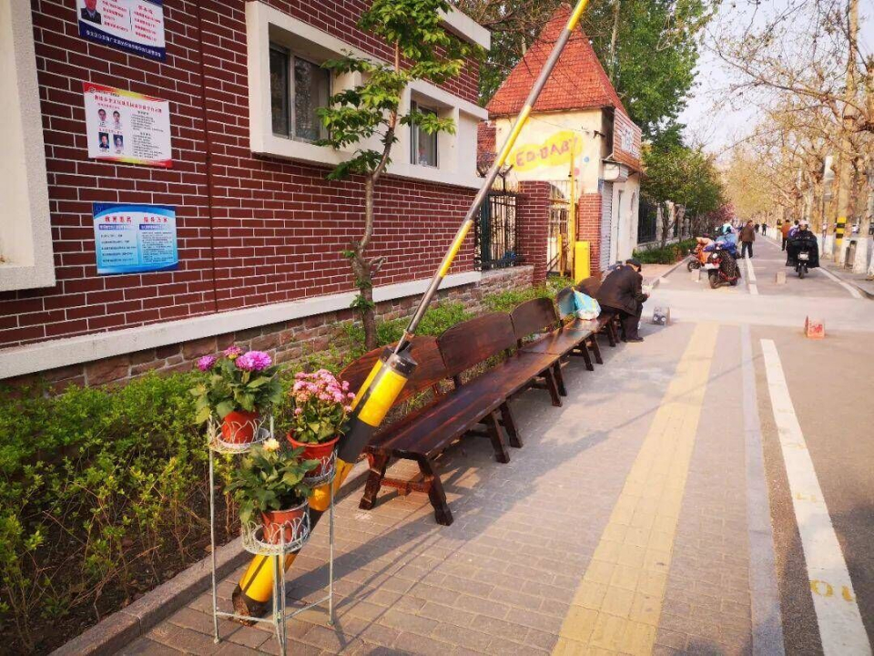 长椅不仅服务于家长,同时还为来访咨询、业务交流、环卫工人、路人及过路学生工作休闲提供了临时驻足点。