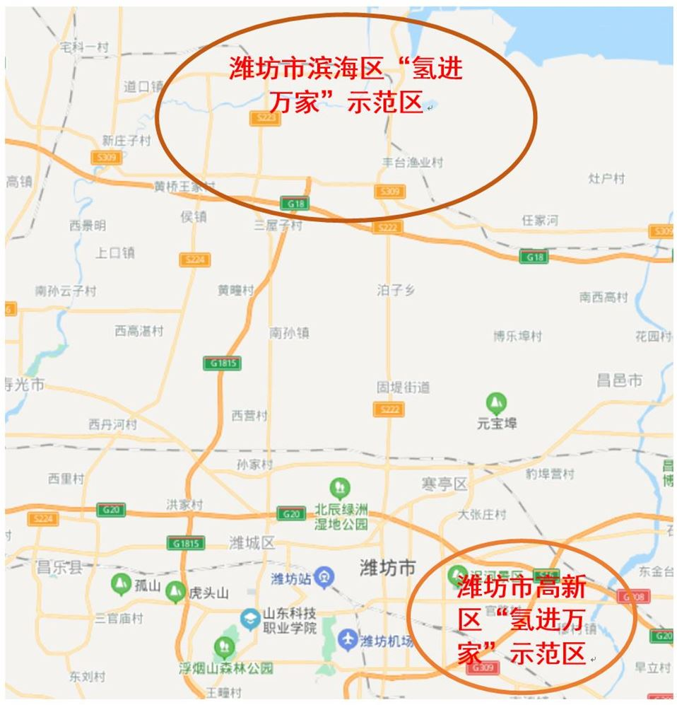 潍坊市“氢进万家”示范工程区位情况
