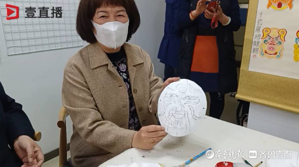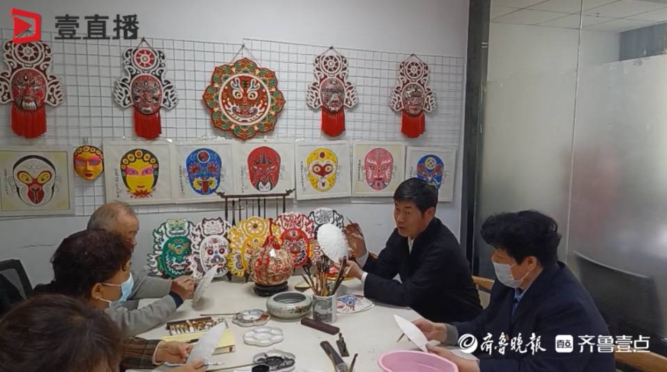 作为侯氏社火脸谱第六代非遗传承人,侯志新在济南天桥区万盛社区有一个简单的工作室,每天都会教大家怎样去画社火脸谱。