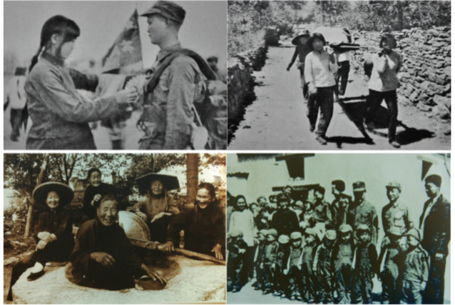 举个支援前线的例子:为照顾伤员,平邑一区担架队一天只吃一顿饭,却凑钱为伤员买鸡蛋买油条买花生;为抢运军粮,莒沂县400辆小车运送11万斤面粉,一路追赶部队,行程2000多里,自带的干粮吃完了,他们宁愿挨饿,也绝不动军粮一粒。“大军连营七百里,村村灯火到天明”,正是沂蒙人民无私奉献的真实写照。