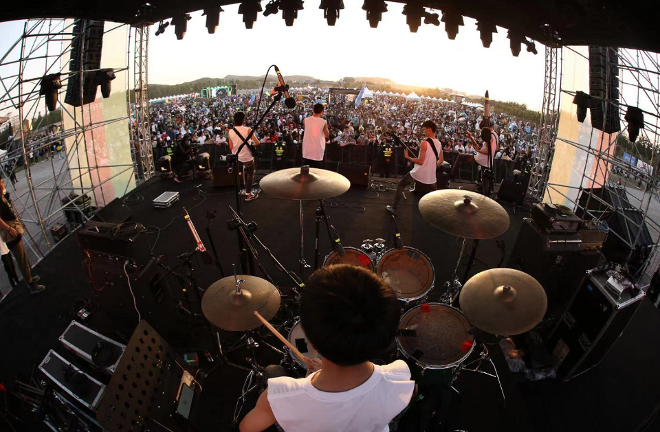 傍晚时分,Open乐队 的5名17岁少年身穿无袖T恤和白色球鞋走上孩迷舞台,稚嫩的脸庞与硬核的金属曲风形成强烈反差,瞬间炸裂全场,夕阳余晖照耀着台上的青春,这是属于摇滚少年的独特魅力。