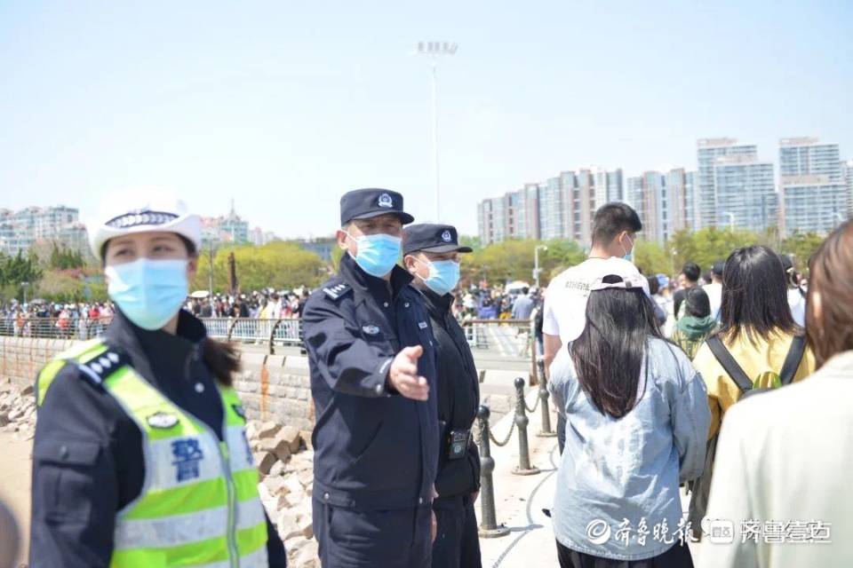 麦岛派出所副所长刘金鑫介绍,5月1日和2日,每天平均人流量达到1.5万人次,岛上瞬间峰值9000余人,而最大包容量为1.5万人,一旦到量便会进行封闭。为确保游客安全出行,崂山警方启动一级安保勤务,全员停休,加大对小麦岛的巡逻执勤,科学用警,全力创造良好的社会治安环境。目前人流高峰出现在下午3点至5点,这个时间段采取“单向进出岛”措施,在岛上进行了动线规划,通过设置指示牌、人员指导等疏导人流,并在石桥上新画了虚线,规定两个方向,减少人流对冲。