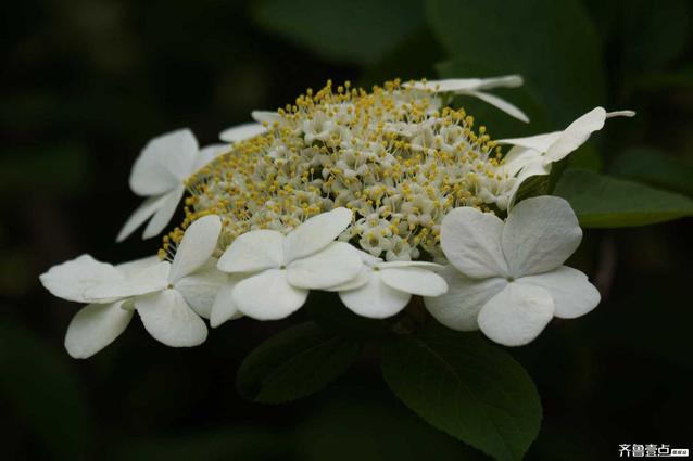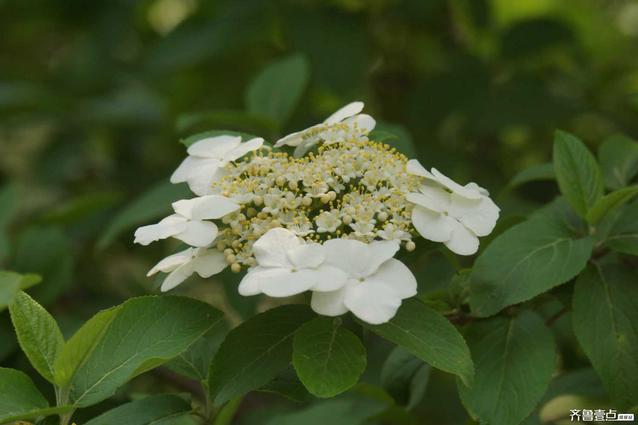 琼花:又名聚八仙,蝴蝶花,牛耳抱珠。忍冬科落叶半常缘灌木。4-5间开花,花大如盘,洁白如玉。聚伞花序生于枝端,周边八朵为萼片发育成的不孕花,中间为两性小花。分布于江苏安徽浙江江西湖北湖南。喜光略耐阴,喜温暖湿洞气侯,软耐寒,宜在肥沃湿润排水良好的土壤中生长。较耐寒能适应一般土壤,长势旺盛都荫芽力萌蘖力均强。现在在北方园林亦有栽培。