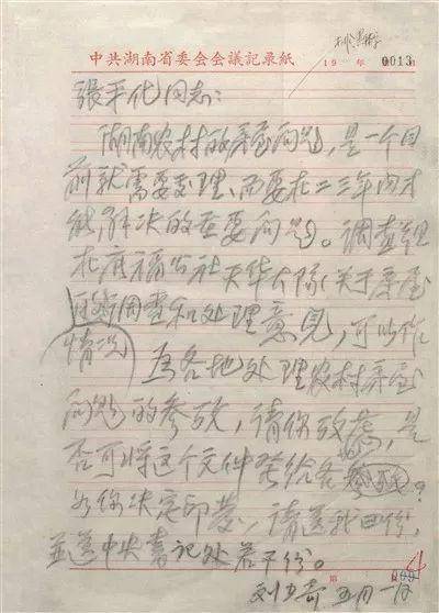 一是学习一切从实际出发。调查研究就是要为解决实际存在的问题找到可行的办法。1959年至1961年,由于“大跃进”和“反右倾”错误,加上自然灾害和苏联政府撕毁合同,中国国民经济发生严重困难,国家和人民遭到重大损失。面对这种困难的局面,在1961年1月中共八届九中全会上,毛泽东说,最近几年,调查做得少了,不大摸底了,大概是官做大了。……请同志们回去后大兴调查研究之风,一切从实际出发。此后,中央领导人相继到基层开展调查研究。1961年4月至5月,刘少奇在家乡湖南宁乡县和长沙县进行了为期44天的调查研究,(图10)现在大家看到的这张照片,是刘少奇在湖南进行农村调查期间,写给时任中共湖南省委第一书记张平化的。目前,信件原件保存在湖南省档案馆,成为馆里珍贵的历史档案,也是一段珍藏的红色记忆。