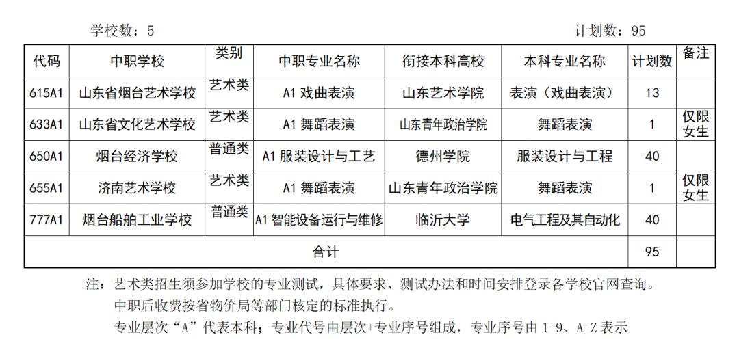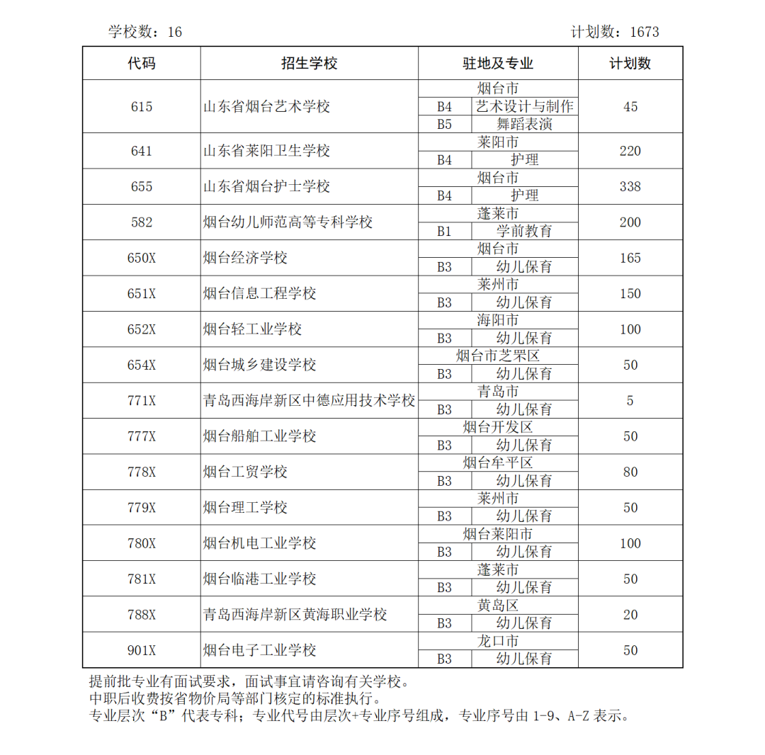烟台市2021年五年一贯制、三二连读高等师范教育、高等职业教育有面试要求专业招生来源计划
