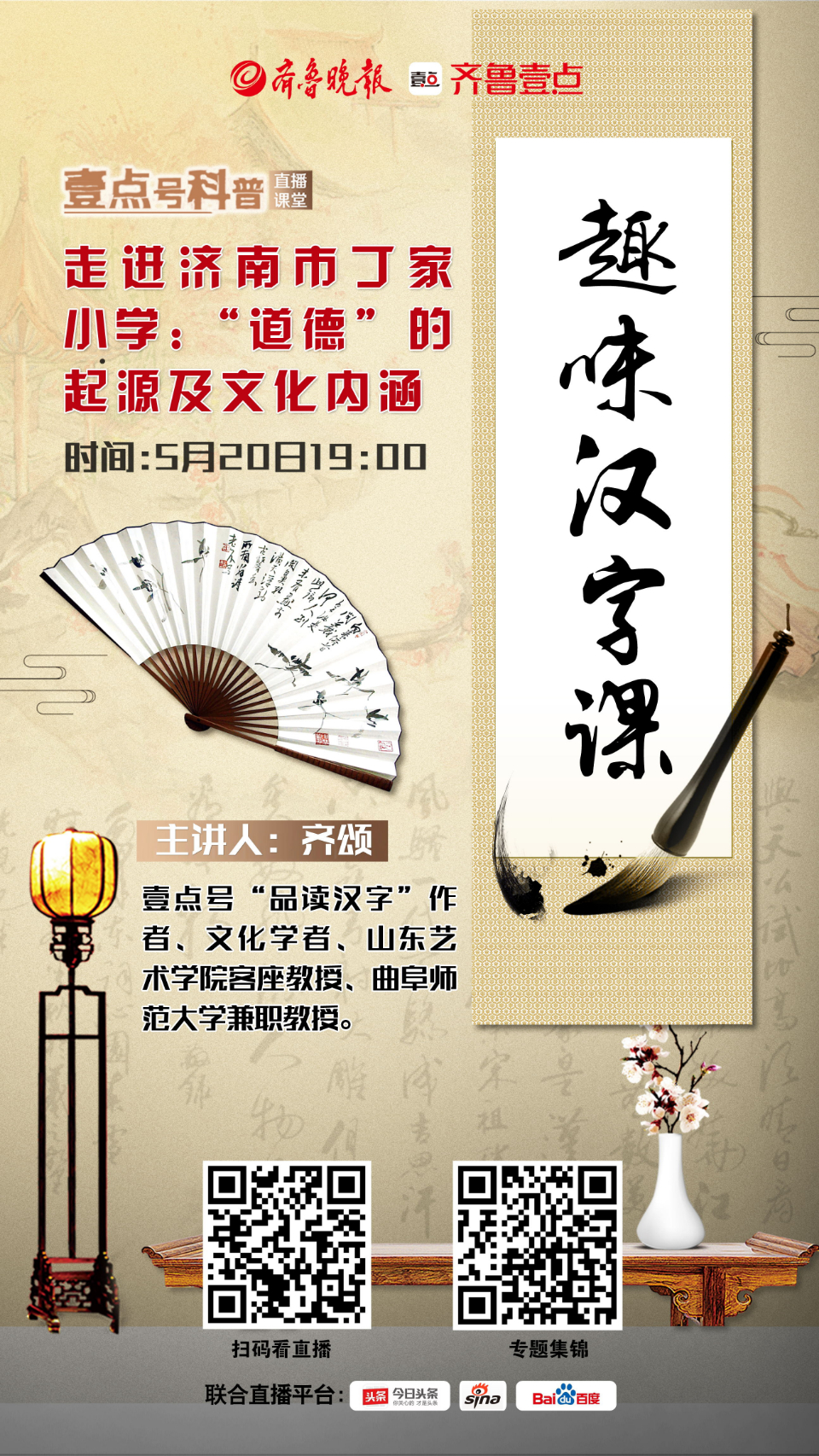 《趣味汉字课》将于每周四晚7点在齐鲁壹点客户端、新浪、百度、今日头条、西瓜视频等平台同步直播。敬请关注!