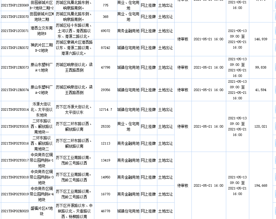 第三批次进行竞拍的历城区成交量较槐荫区略少,共13宗土地成交,总面积约513.6亩,主要分布在章锦、郭店、新东站等片区。