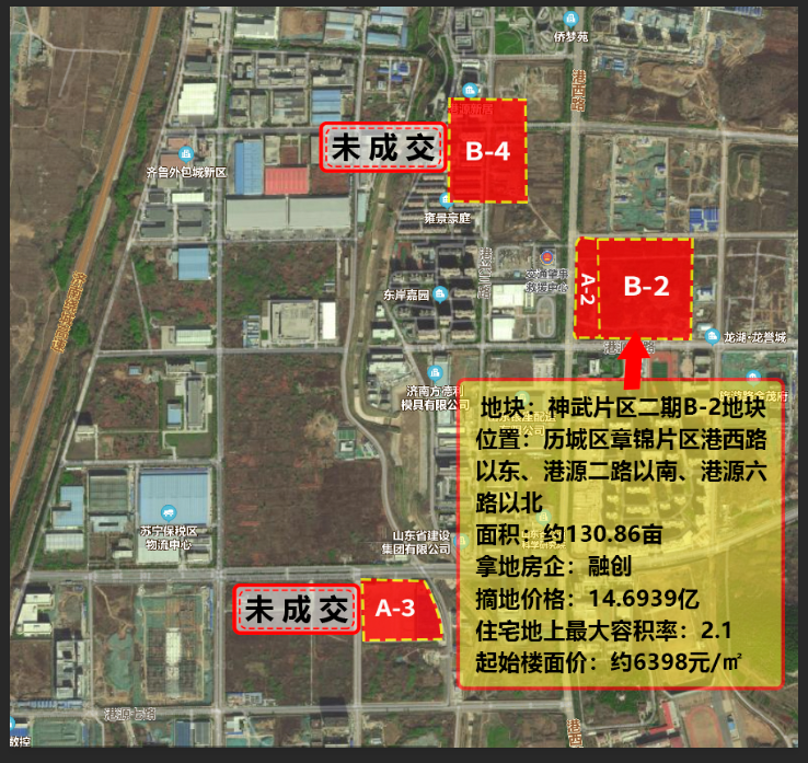第四批次进行竞拍的槐荫区总成交面积约667亩,仅次于市中区。地块主要分布在济齐路、王府庄车辆段。