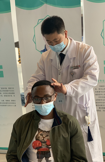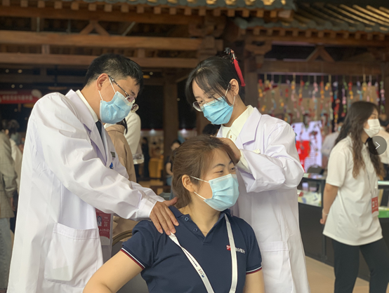 展览活动现场,薛琨医师采用推拿、针刺、浮针、岐黄针等多种方式进行治疗,运用中医“形神一体观”理论向嘉宾们宣传预防脊柱关节类疾病和内科疾病的保健知识,广受嘉宾欢迎。有肩臂痛不能举者,行浮针治疗后,短短十分钟,活动入常,疗效显著。也有很多国际友人抱着试一试的态度感受推拿疗法。