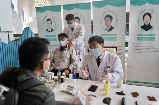 山东省中医院推拿科王建民医生详细询问各位嘉宾的病情,认真进行检查、诊断,耐心解答患者提出的各种问题,针对目前颈椎病发病普遍化、年轻化的情况,重点宣传了颈肩部的保健知识。同时,推拿过程中,也讲解了中医传统文化和知识,向嘉宾介绍了山东省中医院中药、自制剂、脉诊、针灸等方面的风采,让嘉宾们体验到了传统中医的魅力!