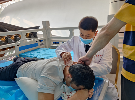 自6月1日青岛博鳌亚洲论坛开幕后,中医特色体验区已经排起长队,来咨询就诊的嘉宾络绎不绝,山东省中医院推拿科主任李华东坐诊于中医特色体验区vip诊室,对嘉宾们进行仔细地询问和检查后,李华东采用了推拿、针刀、拔罐及导引等疗法,进行针对性地治疗,耐心详细地指导了患者的日常活动姿势。