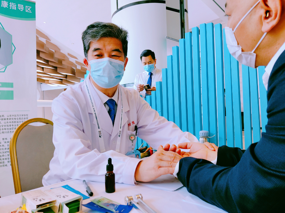 山东省中医院脉诊展区由系统辨证脉学创始人齐向华教授带队,滕晶教授、丁晓博士参加,团队成员年龄跨60年代、70年代、80年代,老中青三代齐聚青岛,通过脉诊展示了“传承”的意义。